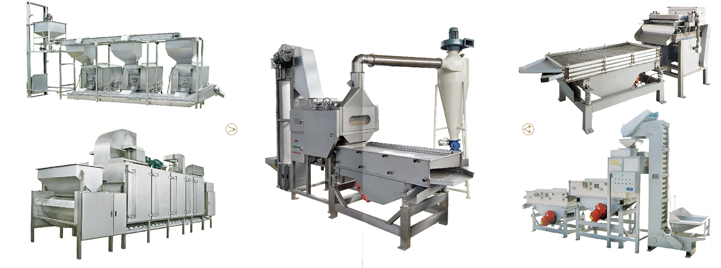 該生產(chǎn)線是將烘烤后的堅(jiān)果去皮,進(jìn)行不同粒度的切碎分級(jí)的加工設(shè)備;如:花生碎、核桃碎等。還可用于各種干燥后的果蔬類、餅干類等切碎切粒,廣泛用于各種糕點(diǎn)、餡料、調(diào)味品等產(chǎn)品。