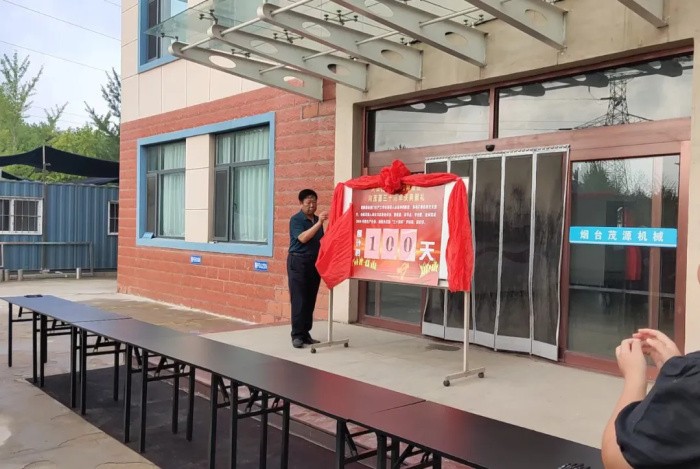 隨后,大會第四項,董事長姜篤華先生上臺講話,為全體茂源人帶來了激勵與期望。講話完畢,姜董進行了 “大干 100 天,為茂源公司成立三十周年獻禮” 倒計時揭牌儀式,將大會推向高潮。