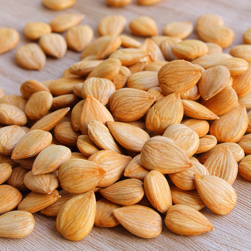 ??核仁含有20%的蛋白質(zhì),不含淀粉,磨碎、加壓后,榨出的油脂,大約是本身重量的一半,杏仁油為淡黃色,雖然沒有香味,但具有軟化皮膚的功效。